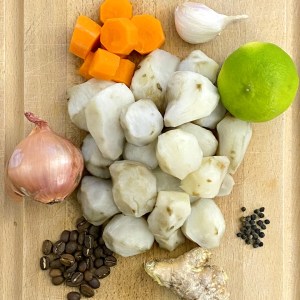 C’est lors d’une dégustation de vin que j’ai découvert cette tartinade de topinambour au café. Pur héritage de la cuisine traditionnelle française, j’ai apporté à cette recette une touche moderne avec des arômes issus de fruits et légumes du monde.