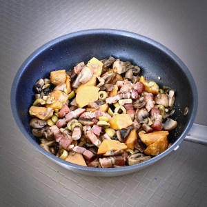 recette poêlée hivernale, poêlée hivernale, poêlée hivernale avec des restes, restes de cuisine, recette avec de la ventrêche fumée, recette avec de la patate douce, recette avec des champignons bruns, recette avec des olives vertes, plat d’hiver, recette hivernale, recette d’hiver, réduction de gaspillage alimentaire, recette anti gaspi, restes alimentaires, recette avec des restes alimentaires, restes de nourriture, recette avec des restes de nourriture, cuisiner les restes, winter skillet recipe, homemade cooking, kitchen leftovers, smoked belly slices, sweet potato recipe, brown mushrooms recipe, green olives recipe, winter dish, food waste reduction, cooking with leftovers, reducing food waste,