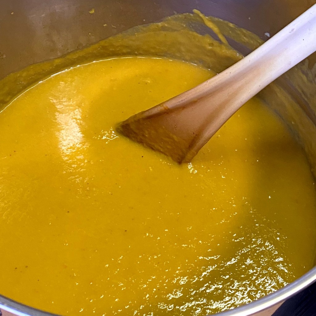 - Passer la soupe au chinois étamine pour éliminer les fibres. Je préfère les laisser car ça favorise le transit intestinal.